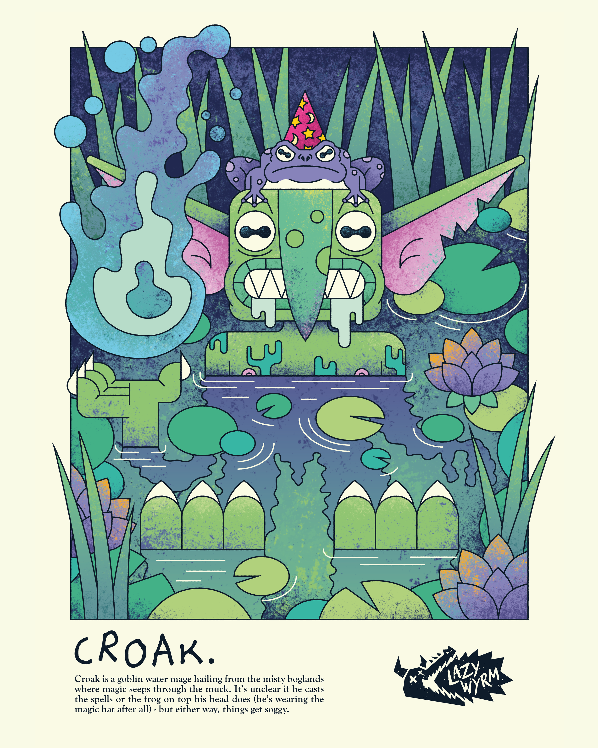 Croak is a little goblin water mage, but is he in control of the magic or is the little angry frog on his head in control? It’s probably the frog, he’s wearing the magic hat after all.