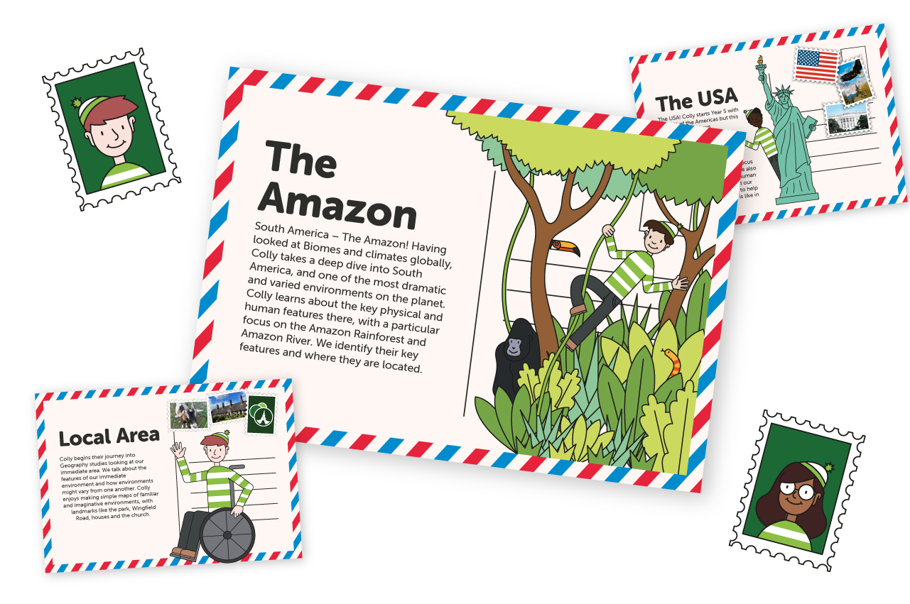 Coleshill School’s geography department wanted to put a playful spin on a classic - creating a globetrotting homage to Where’s Wally? I illustrated a diverse group of students in the school’s green colours, scattered across different global scenes to reflect the topics covered each year. Packed with detail and character, the artwork brings geography to life and turns curriculum info into a fun visual adventure.